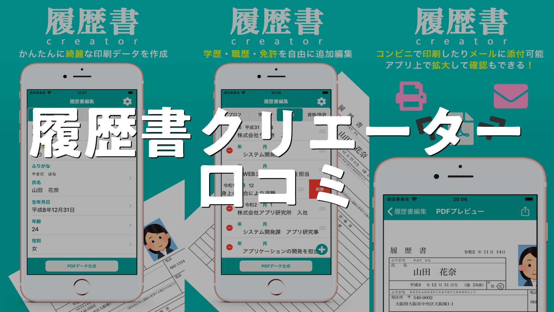 履歴書クリエーターの口コミ・口コミついてまとめました