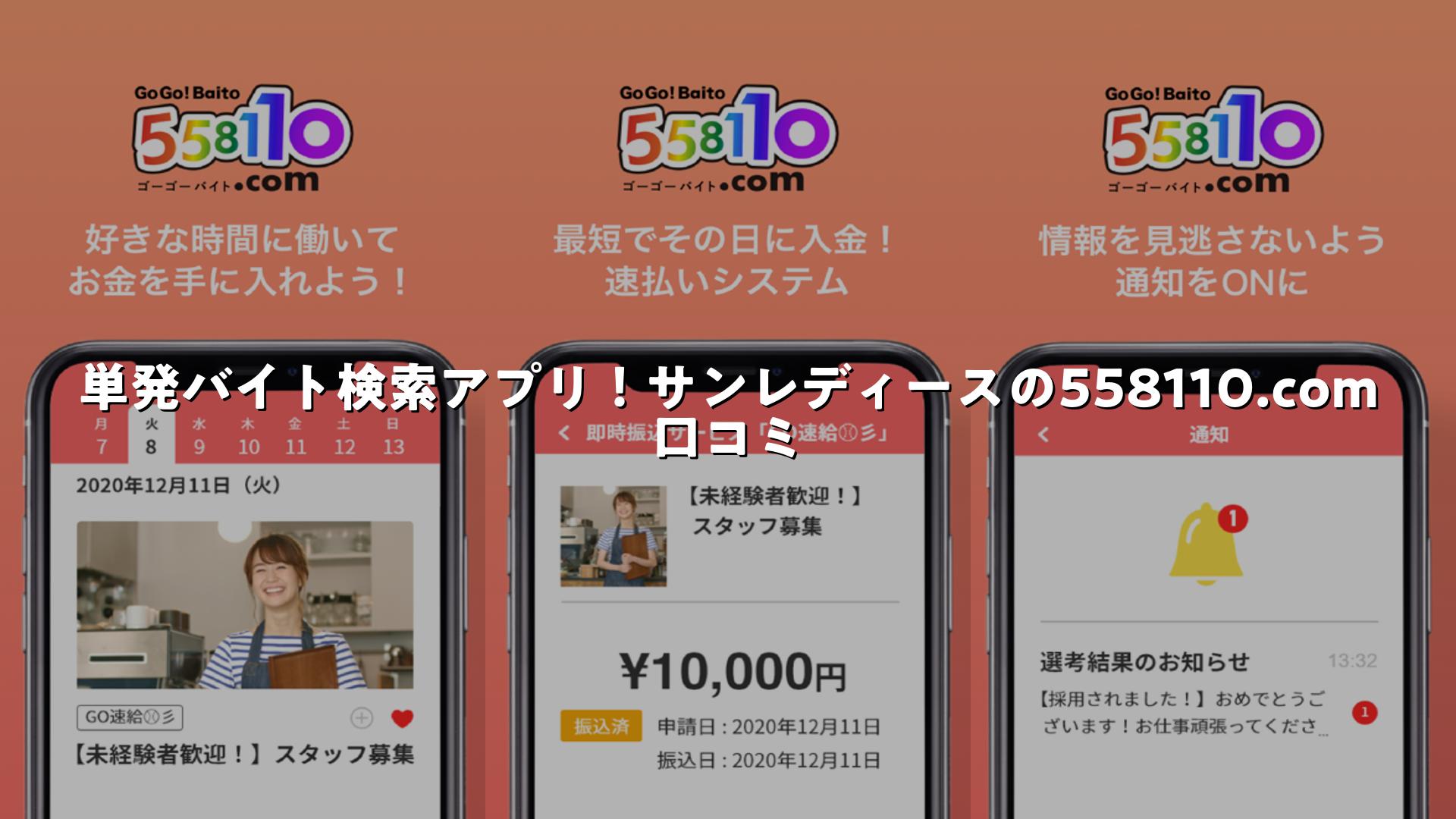 単発バイト検索アプリ!サンレディースの558110.comの口コミ・口コミついてまとめました