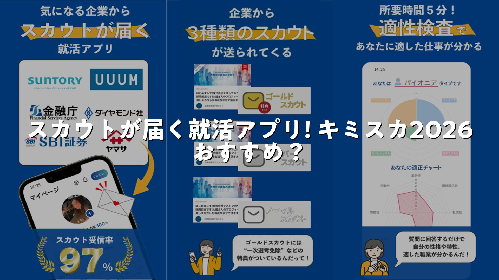 スカウトが届く就活アプリ! キミスカ2026の口コミ・おすすめ?ついてまとめました