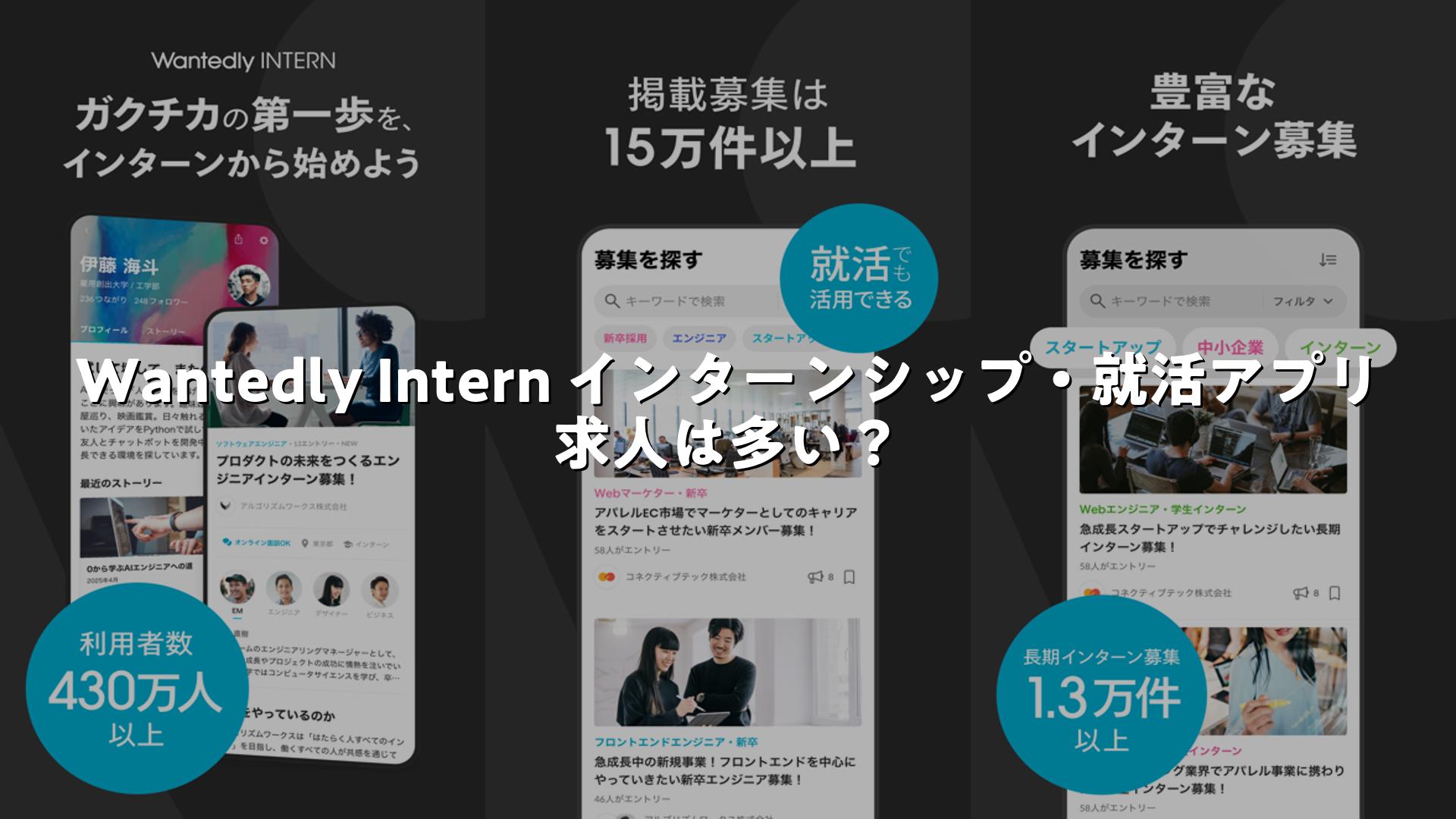 Wantedly Intern インターンシップ・就活アプリ 求人は多い?アプリを調査